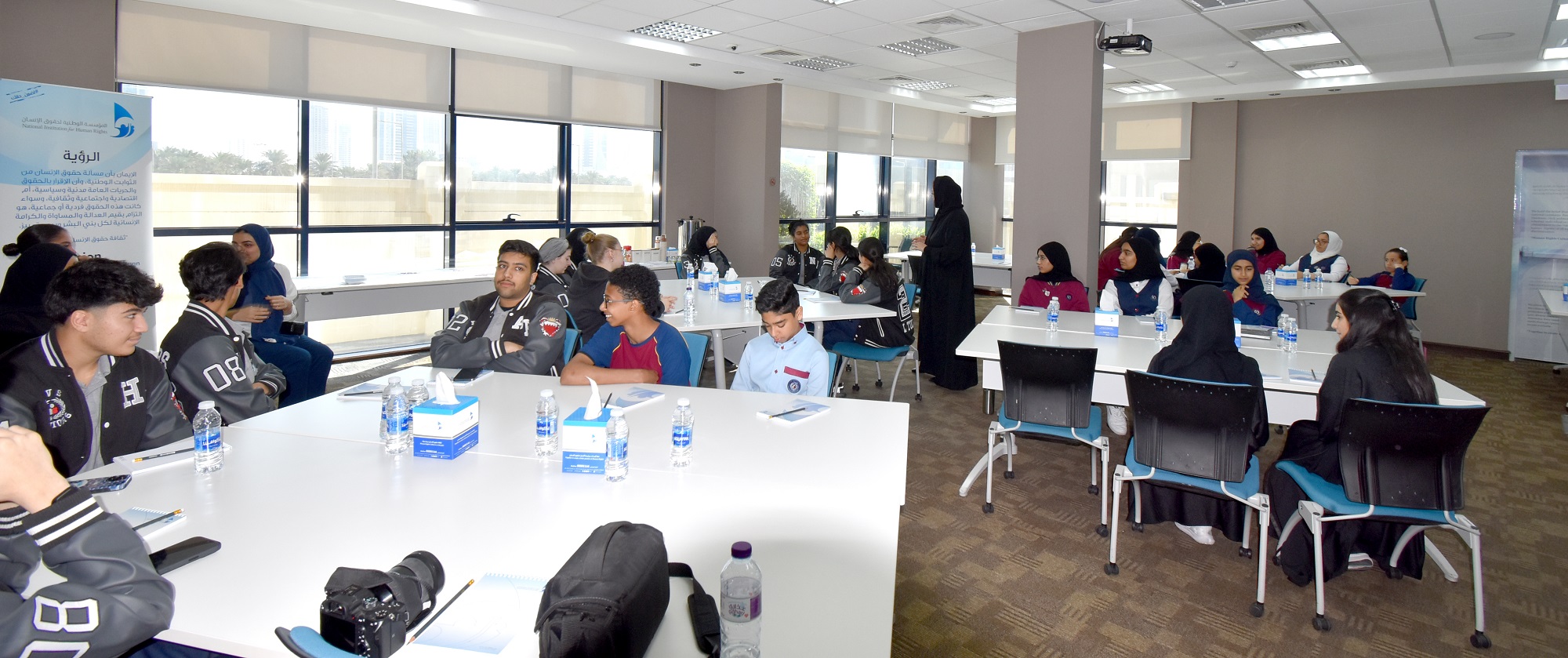 The National Institution for Human Rights (NIHR) organized an awareness lecture for the Child Rights Committee students and the Scouts students of New Vision School, titled “Mockery and Ridicule and Their Impact on the Rights of the Child.” The lecture was held at the NIHR premises in Seef District, as part of the school’s initiatives aimed at promoting positive behavior, reinforcing the culture of child rights, and raising awareness among students across various educational stages.