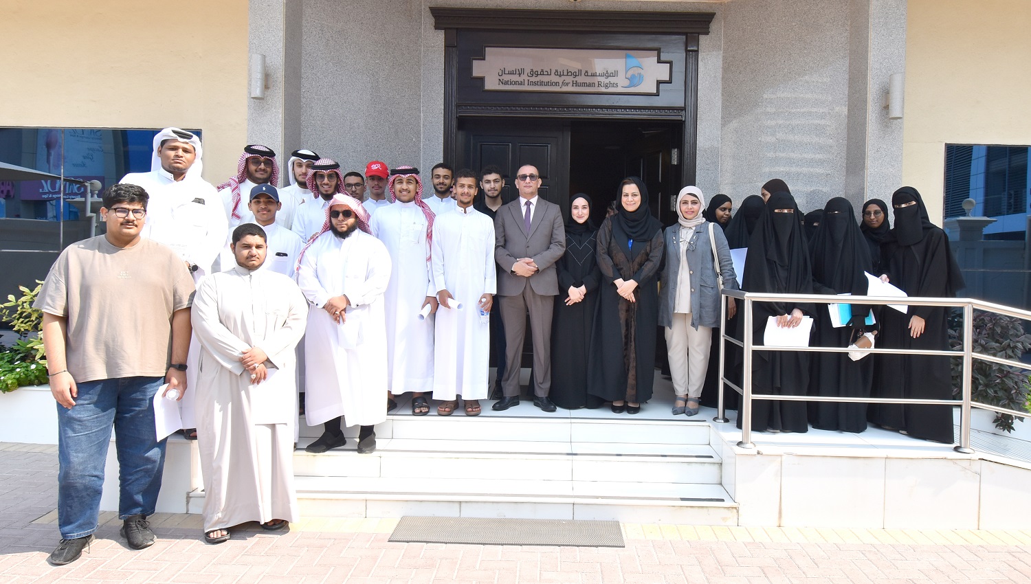 The National Institution for Human Rights (NIHR) received a group of students from Abdullah bin Khalid College for Islamic Studies during a field visit to the Institution’s headquarters in the Seef District, as part of its program aimed at promoting awareness of human rights culture among students of higher education institutions.