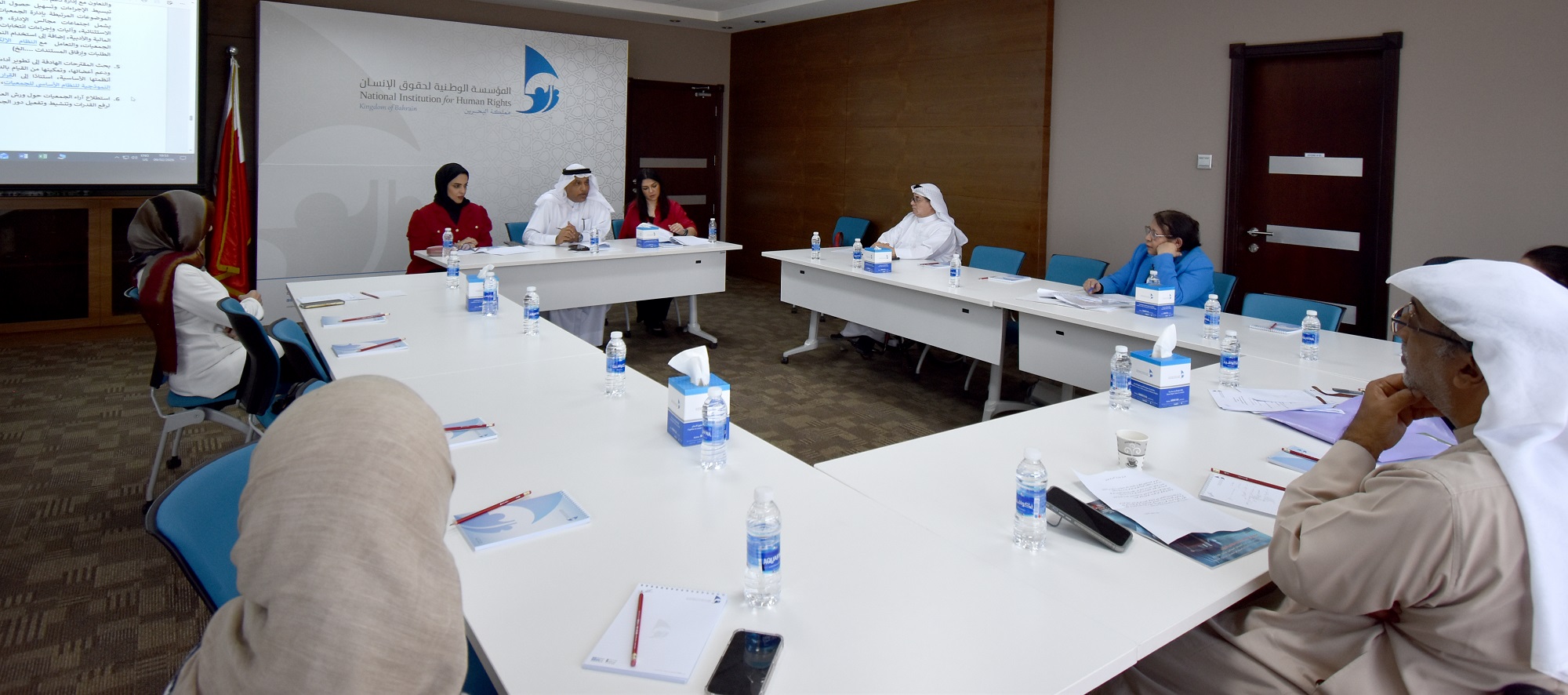The Working Group’s objectives were also presented, including strengthening frameworks for cooperation and coordination between the Institution and civil society organizations; establishing effective communication channels for the exchange of information and expertise; and proposing qualitative initiatives that contribute to the protection and promotion of human rights. Additional objectives include building members’ capacities, establishing a shared database, studying the human rights situation in the Kingdom of Bahrain, exploring mechanisms for addressing complaints, organizing joint events and training programs, and preparing studies and surveys to measure awareness levels and assess the alignment of national legislation with international standards.