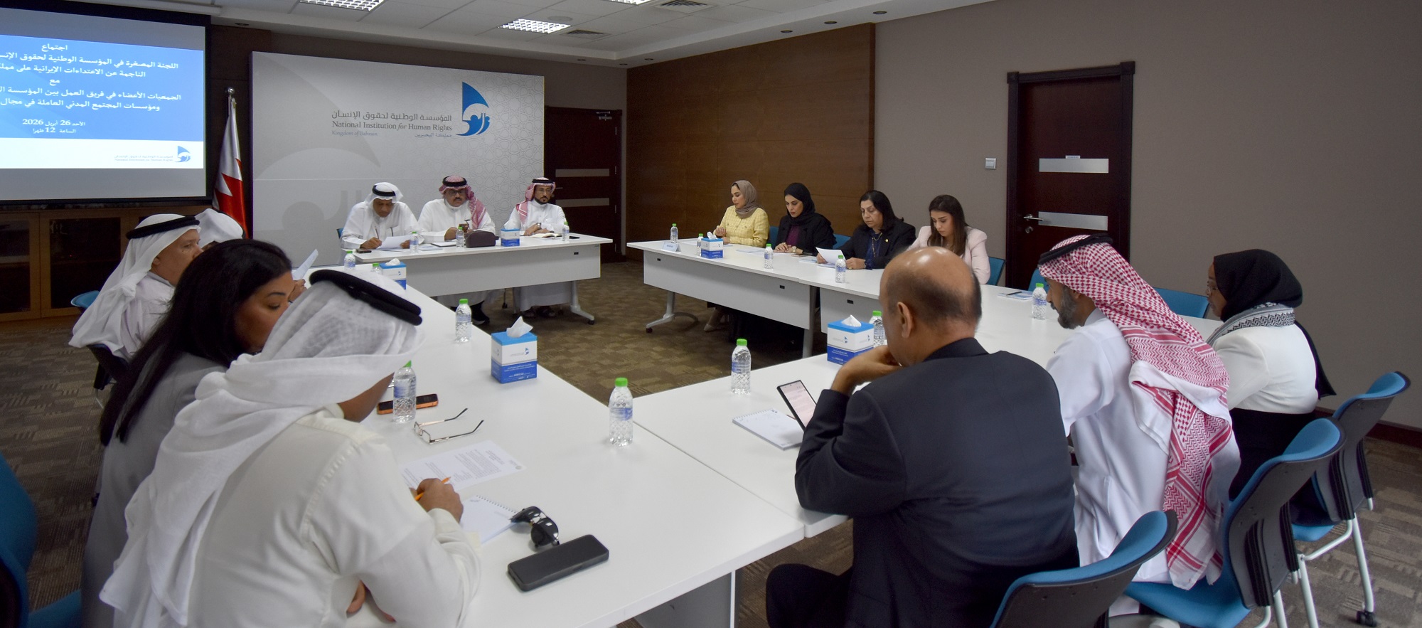 في إطار تعزيز الشراكة الوطنية مع مؤسسات المجتمع المدني وتوسيع مجالات التعاون مع الجمعيات والمنظمات الأهلية، عقدت المؤسسة الوطنية لحقوق الإنسان اجتماعًا تنسيقيًا مع عدد من هذه الجهات، لبحث التداعيات الحقوقية المترتبة على الاعتداءات الإيرانية على مملكة البحرين، وذلك دعمًا لإعداد التقرير الحقوقي الذي تعمل عليه المؤسسة، والذي سيتضمن جزءًا مخصصًا لمرئيات جمعيات المجتمع المدني، بما يعكس وجهات نظرها ورصدها للواقع بوصفها معبّرة عن نبض المجتمع، ويسهم في إثراء محتوى التقرير وتعزيز شموليته ومصداقيته.