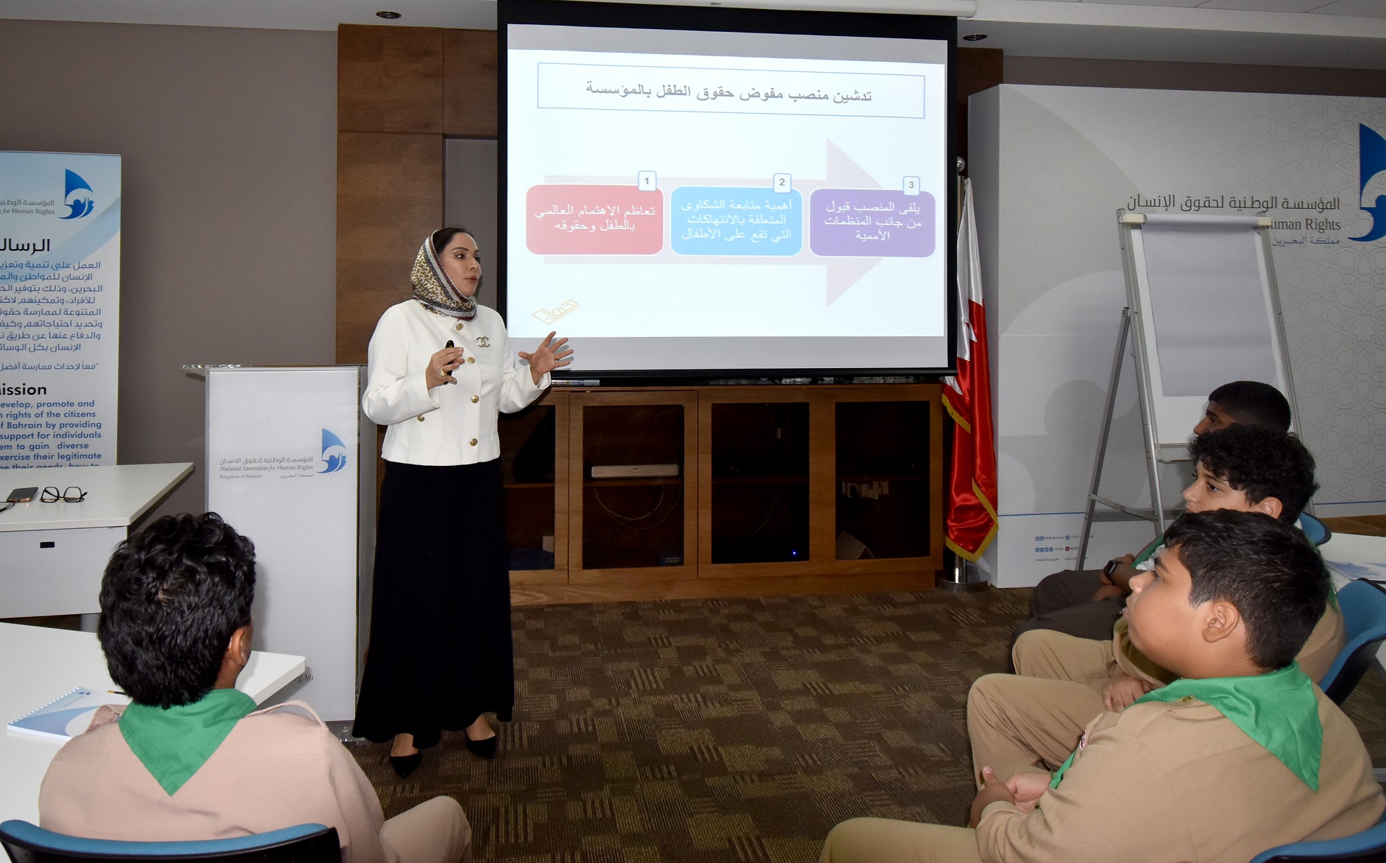مجموعة من كشافة وزارة التربية والتعليم يزورون المؤسسة الوطنية لحقوق الإنسان للتعرف على حقوق الطفل